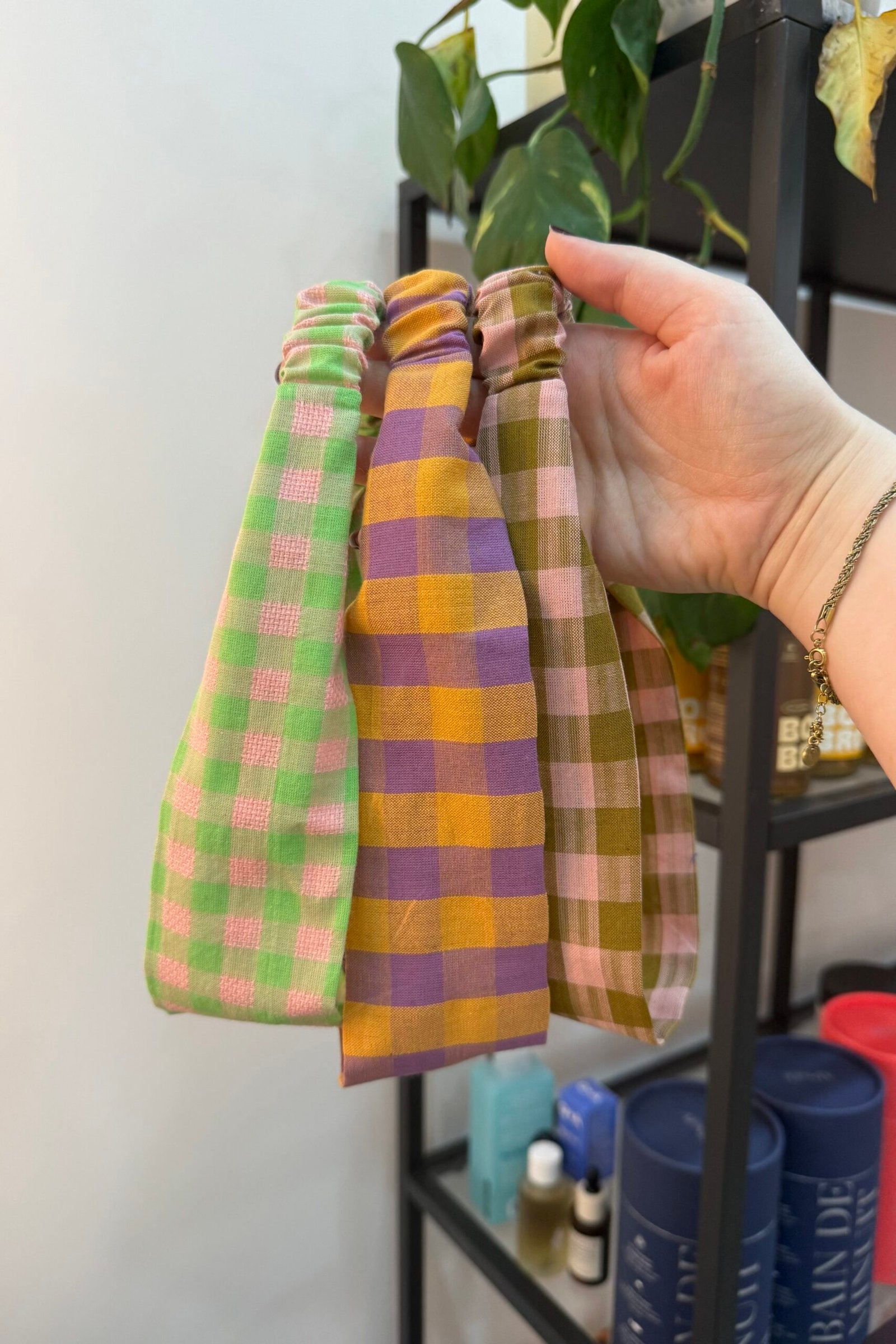 Vichy vert fluo, Vichy mauve et jaune, Vichy vert foncé et rose poudré