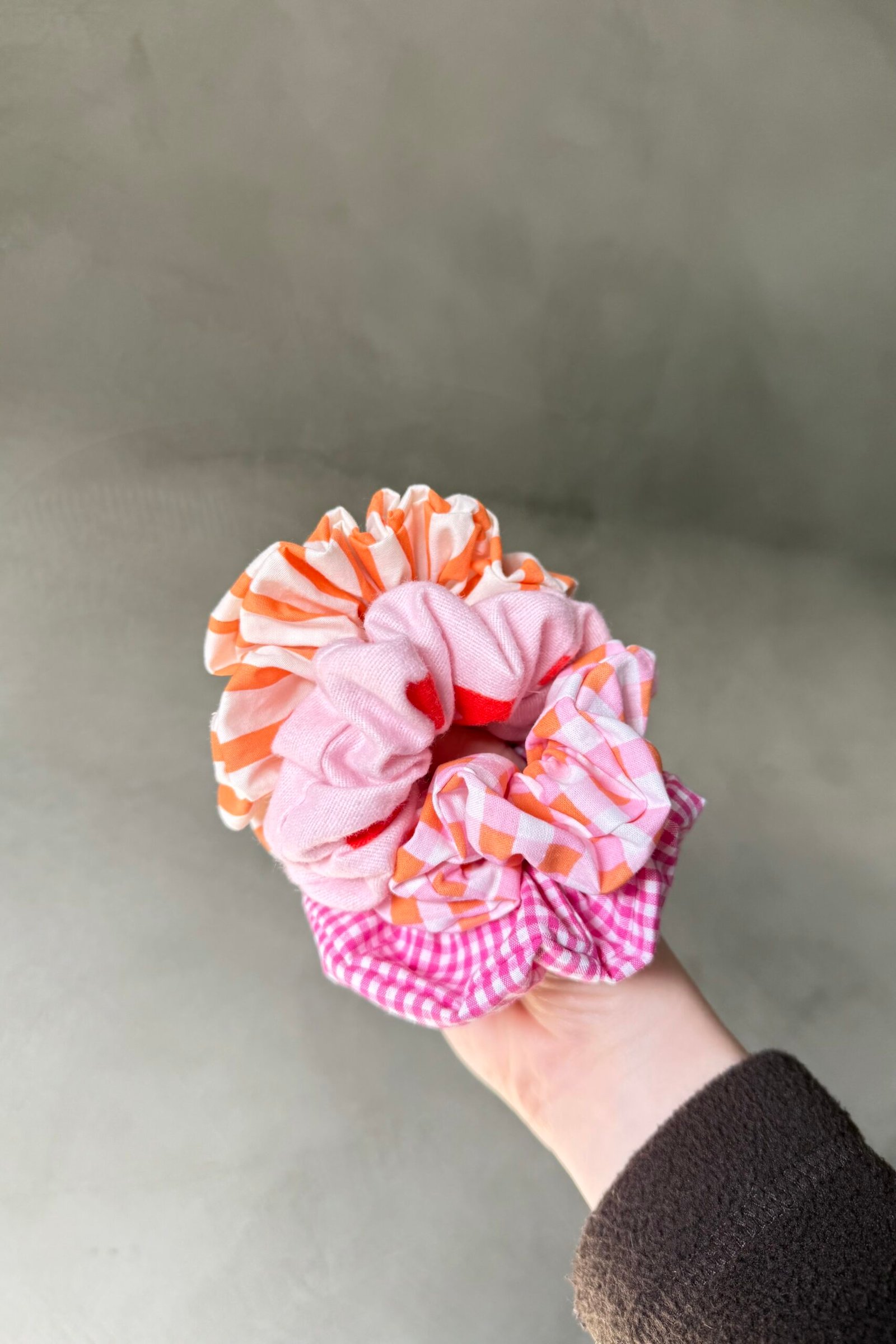 Ligné orange, rose à coeurs, vichy rose et orange, petit vichy rose