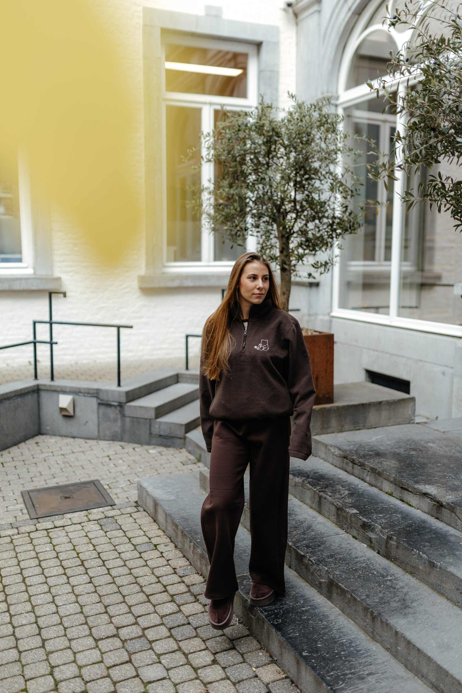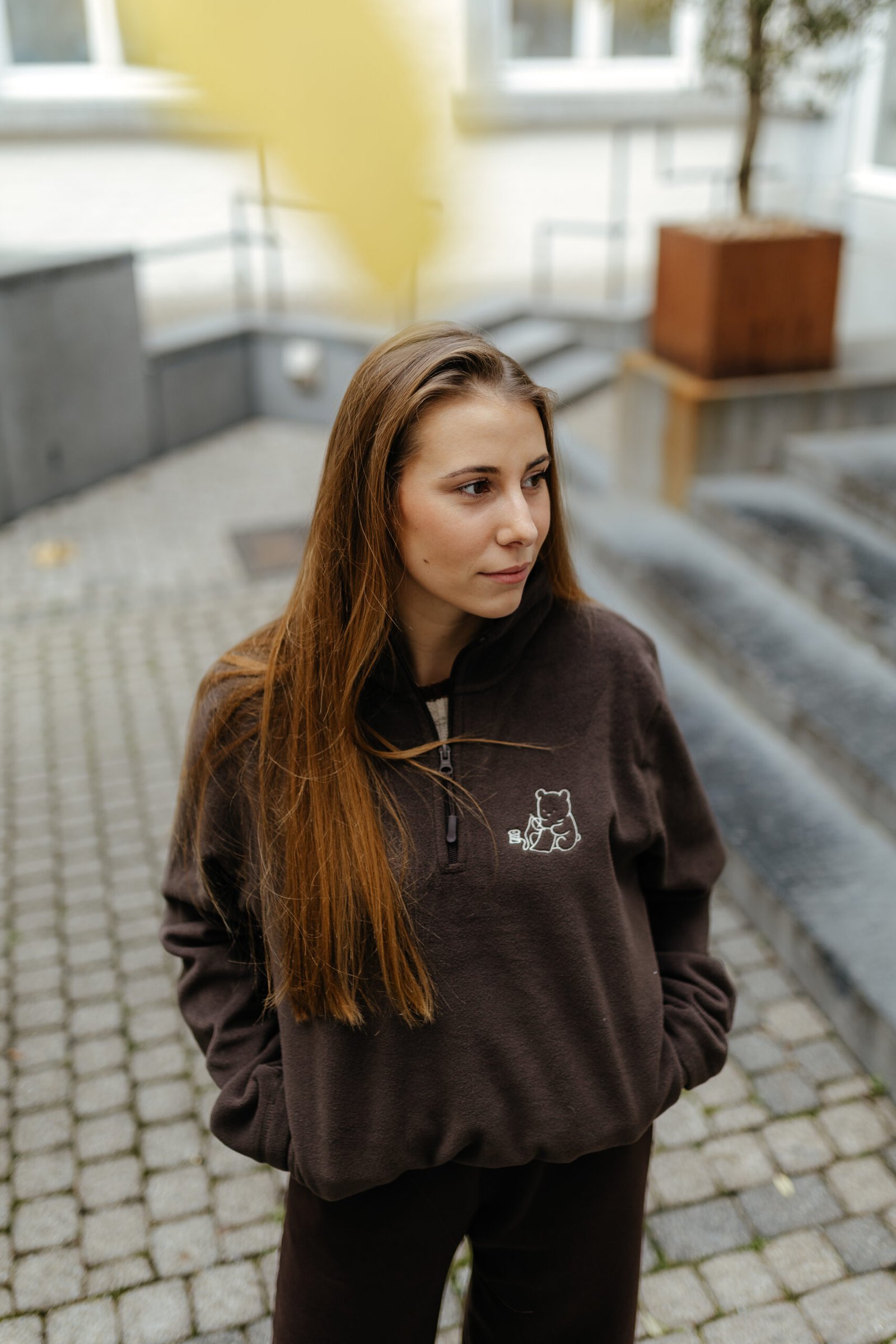 Polar confortable avec broderie ourson sur le coeur.